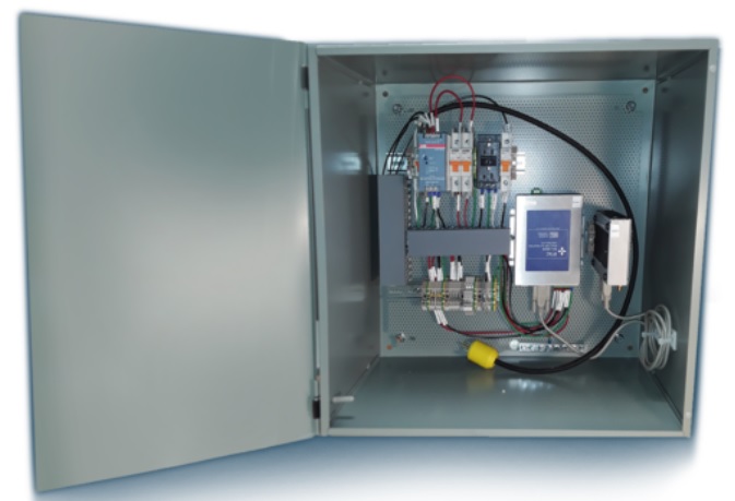 - Typically would contain a step-down power supply transformer and status display.